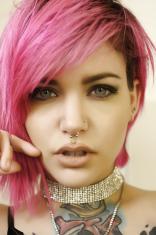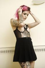BrunetteRoseCaucasienneSeins NaturelsRaséePiercingsTatouagesIntérieurLingerieOpen Legs